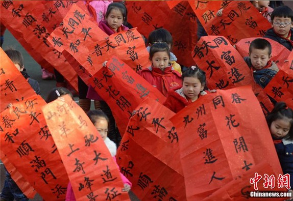 近500名小学生进行写春联书法大赛,迎接即将到来的新春佳节!