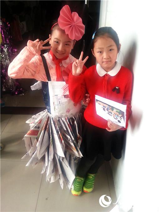 初嘉荟说,每个女孩都有一个公主梦。这件公主裙的创意来自芭比公主书,里面女孩穿的衣服都很漂亮,当时自己看到的时候就想拥有这样的一件衣服。这件公主裙是和妈妈用了50多张报纸和彩纸一起共同完成的,妈妈负责折报纸,自己负责裁剪和粘贴,用了三天时间完成。初嘉荟还告诉记者,这次创意大赛非常有意思,不仅展开想象力还培养了动手的能力。